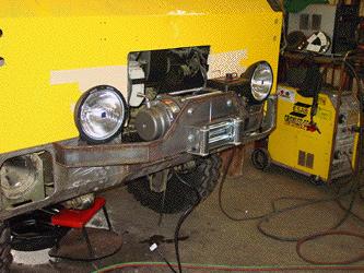 Here you can see we have test fit the new Warn 12,000 winch into the frame
