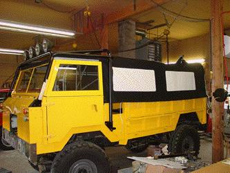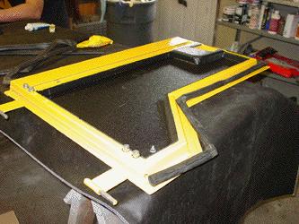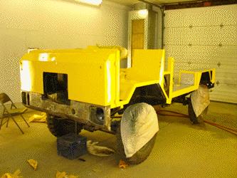 epoxy primer and numerous coats of AA Yellow paint to match the Rover. Once