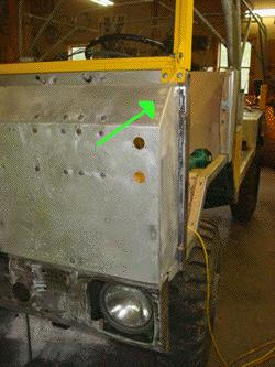 front hoop on the cage. This 3/16" steel bracket will continue down