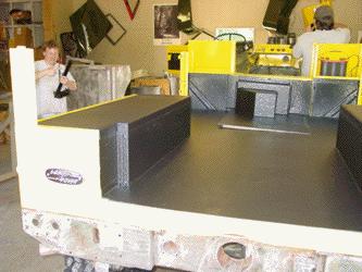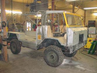 into the paint dept. for epoxy priming and painting in Rover AA yellow.