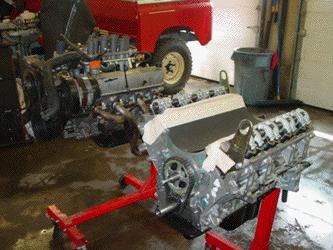 This image shows the damaged 4.6 removed and on the engine stand (left),