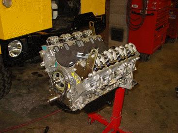 Here you can see the cure to the power problems for the Defender 90, a new ECR 4.6. At this stage all the cross over parts from the 3.9 are evaluated and replaced as needed and then cleaned and made ready for install onto the new ECR 4.6. Would you believe that some dealerships still say you can't put a 4.6 into a Defender 90! We've only been doing it since 1997.