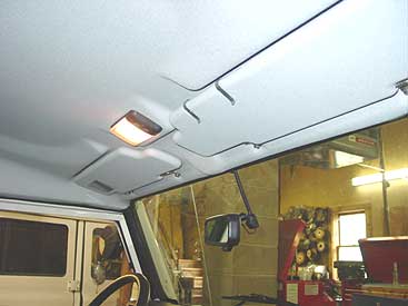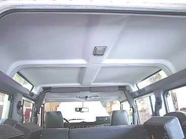 Here you can see the middle and rear headliners installed. This gives a new and clean look to the inside of the 110. You can also see we have added the late model rear interior light so that loading and unloading cargo or people after dark is a much easier operation.