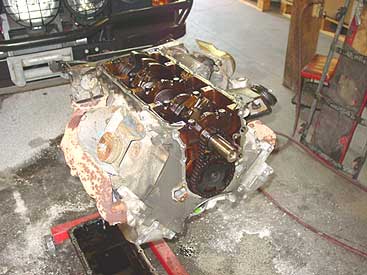 So out comes the stock 4.0 and the parts we need from it are stripped down, cleaned up and made ready for the new 4.6. Above you can see the old 4.0 long block out and stripped down.