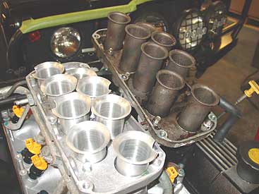 Here you can see the stock 4.0 intake (right) in direct comparison to the Pursuit 4.6 (left). Its a world of difference and one you can feel when driving the 90 by not having to put your foot to the floor or into overdrive all the time. In our opinion all NAS 1997 D90s should have come from the factory with the stock 4.6 at least. You'll also notice above that we have installed some upgraded injectors and we will raise the fuel pressure so that they will atomize correctly in the Rover V8s EFI system.