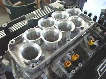 The intake is also matched to the heads. The air intakes are shorter and of larger diameter to allow for more air flow. The entire intake has larger runners and everything is gasket matched for maximum air flow.