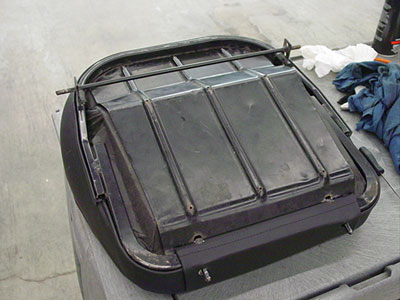 The first step is to strip off all the old foam and get the seat base down to the base frame, as shown above.