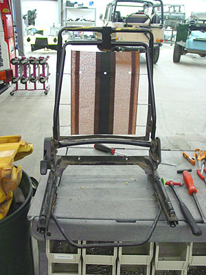 The seat backs were suffering from the same thing. Here you can see the foam and trims have been tossed and the seat frame is ready for the new foam and upholstery