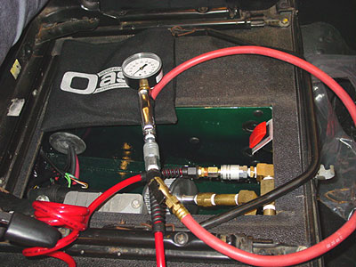 Plug in the supplied air hose and tire fill/gauge combo and fill up your tires as fast as our huge shop compressor does, all from your mobile on board air system. But beware, our beach going and off roading customers that have this system tell us there is a down side. Everyone wants you to fill up their tires too!