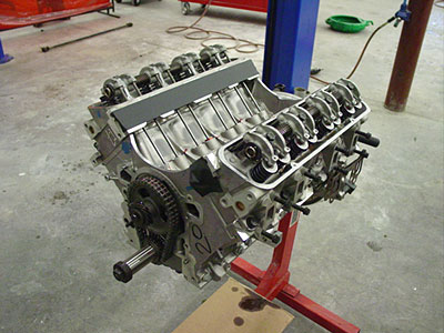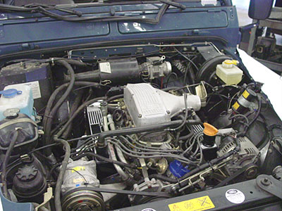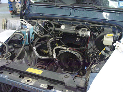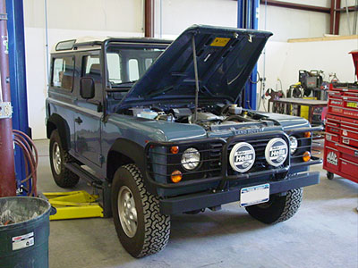 This image shows the mew 4.6 that has been set up by ECR to run in the 1995 Defender. We have installed a new performance camshaft and dual roller timing chain that replaces the plastic geared timing chain of the stock 3.9. The new 4.6 will give the Rover the torque that it was missing from the factory and will make the 90 a much better driver. You won't have to shift down out of 5th gear all the time, you can just put your foot into the throttle and the engine will respond.