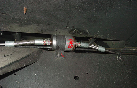 To help keep this beautiful low miles Defender from ending up destroyed in an engine fire we have installed a set of ROX stainless steel oil cooler lines. These replace the factory lines completely and route the oil "cooler" far away from the extremely hot exhaust manifold. This will not only help keep the oil cooler, but will help keep the oil line fire from happening. For more information on oil lines go here.
