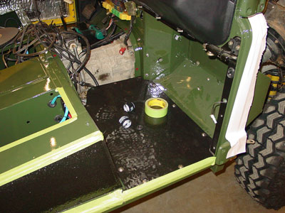 When we say color change, we mean it. That means that all the yellow goes away and becomes green. Here you can see the bulkhead to the truck has been made ready to go to our paint dept. for dunking in primer (to prevent rust) and then prep and new coats of epoxy primer and Eastnor Green paint. If we do a color change it will look like it came from the factory in the new color. We do not just tape things off so that when you open the doors or hood that you would see yellow.