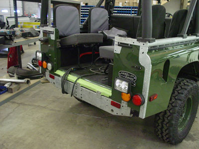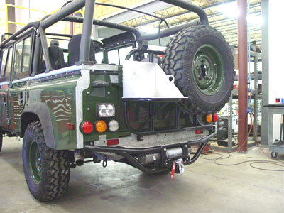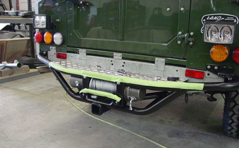 At the rear of the BR110 we have installed the customers desired twin work/reverse lamps and we have run all the wiring for the upcoming rear Warn 9000 winch that will be mounted in our custom rear step/ winch mount.