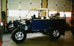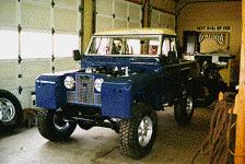 These "in progress" images show this upgraded 88 that is now backwith its owner (who bought it new in 1966) in North Carolina. The Roverhas been fully restored and upgraded with a galv. coil chassis, 4 wheeldisc brakes, a Defender Arles Blue paint job, alloy wheels, wheel flares,heated windscreens, Mansfield heater, inertia seat belts, H.O. 2.25 gasengine, Overdrive, etc. etc.