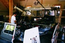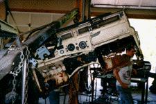 With the rusty bulkhead and door supports removed there isn't much left.The new panels will be put through the paint shop to match the originalcolor and reassembled as the mechanical work on the engine and PTO winchcontinue.