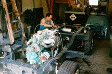 Here the body parts have been removed and the partially assembled chassisis torn down to make way for the new galv. frame.