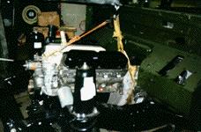 Engine and drive train being installed. In this case this 88" willbe getting a factory fresh 5.0 V8 with a NV4500 5 speed gearbox! Hang on!
