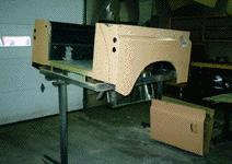 Completely rebuilt rear body and modified Stage 1 style front end beingreadied for new Bronze Green paint in our new state of the art paint facility.