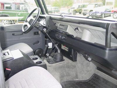 The interior of this D90 is clean and looks great, thanks in no small part to the fact that the cardboard trims are no longer in place. The LH and RH footwell trims on this D90 we have replaced with ECR ROX heavy duty footwell trims for a clean look that will stand up to muddy boots, kids kicking them, whatever.