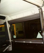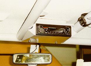 What cross country trip, or trip across town for that matter, would be complete without a good stereo system? We mounted the CD player and all its associated wiring into the 4 point roll cage so that in case water or mud gets into ECR4, we'll have a good shot at not wrecking the electronics. We also wanted a single disc CD player, and not a changer, so we had to mount the unit at a slight angle, and could not use the standard style USA type cubby box. (as single disc head units won't last long at those angles). We selected a Rockford-Fosgate single CD head unit that had a built in amp for as much power as possible, without adding sensitive amplifiers and more wiring that would be against the "keep it simple" ideals of ECR 4. In this image you can also see the "electronic glare reduction" mirror (as found in Range Rovers and NAS Defender 110s) that we installed, as great asset when driving at night.