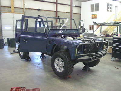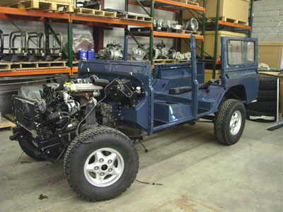 Here you can see the NAS 110 really coming together. The wiring is all in place and the drive-train has been test run. The safari cage has been zinc and powder coated and installed as well as the roof basket. The rear seats are in place and soon the rest of the interior will go into place.