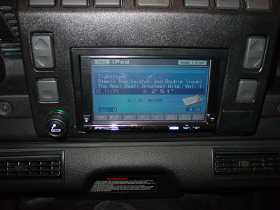 A few touches of the screen and you can listen to the radio or even your iPod (while your iPod stays safely tucked in the center cubby box out of view).