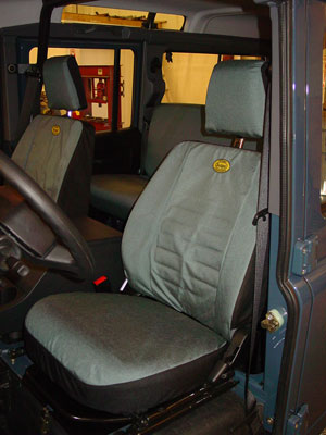 Here you can see the new upgraded seat covers installed on the front seats. These units are top notch and still allow for access to the battery box and tool locker without having to mess with the seat covers.