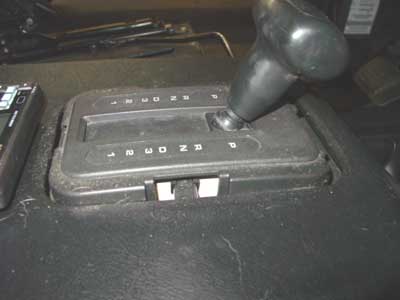 Remove the 2 small panel plugs from the front of the shifter console. There is one on the LH side and one on the RH side.