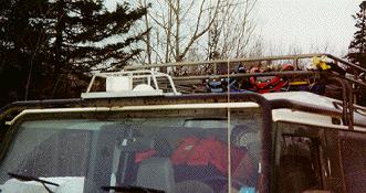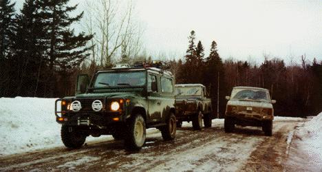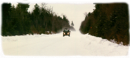 We left ECR early in the morning to get a good deal of miles done during the day so as to be able to set up camp that evening in the daylight. Our trip took us through the middle of the state on mostly back roads from Warren to the Greenville area. Once you leave the Greenville area and head north you are on roads that are rarely used except for logging operations. The other thing to remember is that once you leave Greenville, you are on dirt roads of varying condition and you won't find any more gas stations or stores until you hit the Canadian border. This meant extra fuel for the Rovers had to be carried on board just to make it in and out. Greenville in the winter is a snowmobilers paradise, and our plans to take trucks north of Eagle Lake in February were given more than few doubting laughs by the snowmobile riders we met at the Greenville gas station.