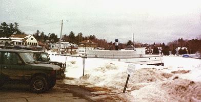 Downtown Greenville is at the southern foot of Moosehead Lake, a famous summer sporting area. Moosehead lake is also home to the old passenger vessel "Katahdin". In the summer months the vessel takes people for tours of the lake, but at this time of the year she is solidly frozen in. We paused for lunch overlooking the frozen lake and then headed out of town and out of civilization towards the settlement of Kokadjo, and then on to Eagle Lake. As the crow flies the GPS told us we only had about 70 miles to go until we reached Eagle Lake, but even the best outfitted Rover can't drive as the crow flies in Northern Maine, so that meant we'd drain the full fuel tanks we had, and have to refill off the gas cans before we got back to Greenville. For those of you who know Defender 90s that means upwards of 300 miles before we'd see a town again.
