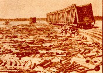 Edouard Lacroix, a very famous Canadian logging industrialist, gained the timber rights to the area in the 1920s. The land had a new batch of trees and he contracted with the paper companies to deliver the goods. Lacroix's crews cut all the timber and sent it down the streams that would flow back to the mills in Millinocket, but they faced the same problem when they crossed into land were the water flowed to the north... how to get the logs to the mills in Central Maine.