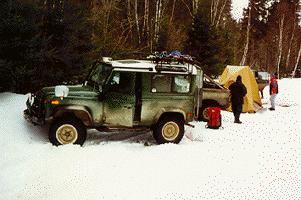 The next morning we packed up the camp and headed for a bit of off roading until we reached the spot where we knew we would have to walk into Eagle Lake. Rovers can handle a lot off road, but the open areas near Eagle Lake had over 3 feet of snow. It doesn't matter how you build up your Rover, once they sink in 3 feet of snow you are probably walking home. We attacked the snow for as far as we could with the Rovers and then it was time to hike.