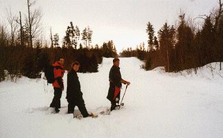 Starting off early in the morning gave us the time we needed to hike in and out of Eagle Lake. According to the GPS the Rovers were left stuck about 4.5 miles from the location of were we thought the trains were from our research. That means it was snowshoe time. The only problem was that the mornings cool temps were giving way to unseasonably warmer weather that the weather radio did not warn us about.