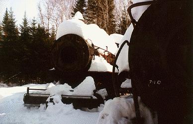 The trek back to ECR from the trains proved to have its share of surprises as well. We were treated to a wonderful sunset on the drive out, but the unusually warm day had led to portions of the frost being unfrozen in the road. The road would suddenly turn to deep mud under our wheels and create ruts that yielded instant lane changes and fishtails. After battling through the ruts and mud to Greenville, where the tarmac begins again, we found that the entire area was without power and the one gas station in Greenville was closed due to no power at the pumps. Fortunately we had reserves with us in case of the worst on our trek in the woods, so we could press on. A few minutes outside of Greenville the warm night had combined with the cool snow covered ground to produce a dense blanket of fog that limited our speeds to roughly 25 mph for the return trip to ECR, but everyone made it home safe and sound and I think we all dreamt of playing with trains again like when we were kids, the only difference is that the trains we like to think about now are the 2 that sit as hidden 90 ton reminders of an abandon railroad tucked deep in Northern Maine.