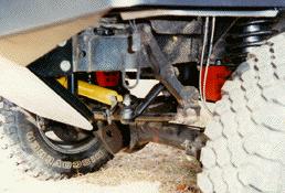 ECR installed host of upgrades to make this Range Rover really perform on the trial. That means both protection and upgrades, not just things that "look good". Here you can see we have installed a diff. guard, ECR's stabilizer relocation kit, extended SS brake lines, front skid plate and more. We also installed an ECR full tie rod guard, a Stage III fully adjustable suspension and upgraded bumpers front and rear.