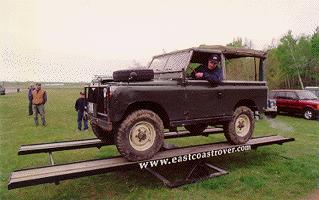 Here a Range Rover tries out ECR's teeter-totter at RoverFest 2000.East Coast Rover Co. is passionate about two things, perfectly restored custom Land-Rovers and Off Roading! We hosted the largest Off Road Land-Rover gatherings in the United States for both 1995 and 1996. We also attend many other functions put on by other hard working Land-Rover clubs and individuals throughout New England. On this page you will fiind some images of fun events we have attended. Enjoy.