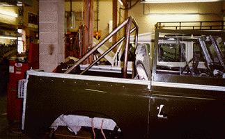 The image above shows an in progress image of a 4 point, fully frame mounted, external cage for a 1970 Series IIA 88. For more images of that ECR custom built cage go here!