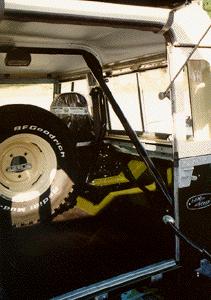 This 88 also had upgraded inertia seat belts that the customer wanted to be able to use even when the top was off, so the roll bar doubles as a support for the seat belt reel and the shoulder pivot point. That way you can have inertia belts no matter what top you have on the Rover. The seat belts system works all the time and does not depend on the top for anything.