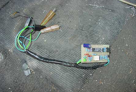 Once you remove the tape holding the device to the harness you will find this piece, as shown by the yellow arrows above. What this little bundle of computer parts wrapped in electrical tape does is alter the signal coming from the temperature sender in the engine before it reaches the coolant gauge on the dash. Basically it tricks the signal to read lower on the gauge you see. It is wired in line between the sending unit in the engine and the gauge itself.