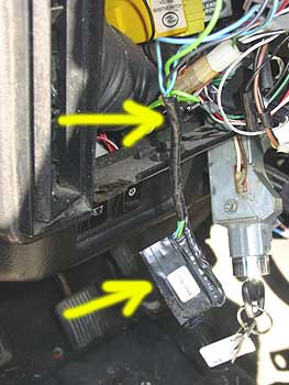 If you remove the dash panel, as shown above on an NAS 110, you will find it taped to the dash wiring harness. See the yellow arrow above.